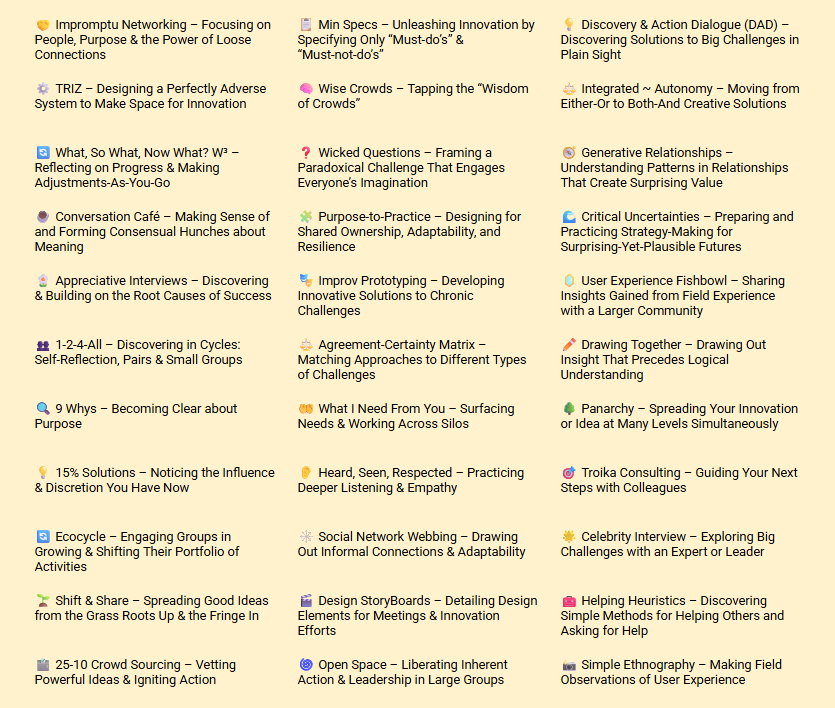 The heart of the book is a detailed guide to each of the 33 Liberating Structures. Each one gets its own section, complete with a clear purpose, step-by-step instructions, and tips for effective facilitation. This format makes it easy to find the right tool for your specific need, whether you’re trying to generate ideas, make a decision, or build shared understanding.